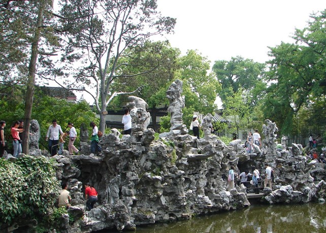 獅子林雖綴山不高,但洞壑盤旋,嵌空奇絕;雖鑿池不深,但回環曲折,層次深奧,飛瀑流泉隱沒于花木扶疏之中,古樹名木令人叫絕,廳堂樓閣更是精巧細致,無愧為吳中名園。獅子林的古建筑大都保留了元代風格,為元代園林代表作。園以疊石取勝,洞壑宛轉,怪石林立,水池縈繞。依山傍水有指柏軒、真趣亭、問梅閣、石舫、臥云室諸構。主廳燕譽堂,結構精美,陳設華麗,是典型的鴛鴦廳形式;指柏軒,南對假山,下臨小池,古柏蒼勁,如置畫中;見山樓,可覽群峰,山巒如云似海;菏花廳雕鏤精工;五松園庭院幽雅;湖心亭、暗香疏影樓、扇亭等均各有特色,耐人觀賞。園內四周長廊縈繞,花墻漏窗變化繁復,名家書法碑帖條石珍品70余方,至今飲譽世間。