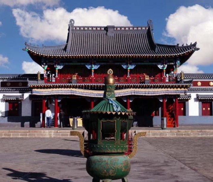 寺為喀爾喀右翼旗(通稱達(dá)爾罕旗)貝勒所建,俗稱貝勒廟;1913年焚毀,1924—1927年間重修,現(xiàn)尚存部分廟宇。大殿內(nèi)分為經(jīng)堂和佛殿,歇山式頂;兩側(cè)配房為硬山式建筑。廟前尚存有覆缽式塔2座。今附近已發(fā)展成為新興草原城鎮(zhèn)。