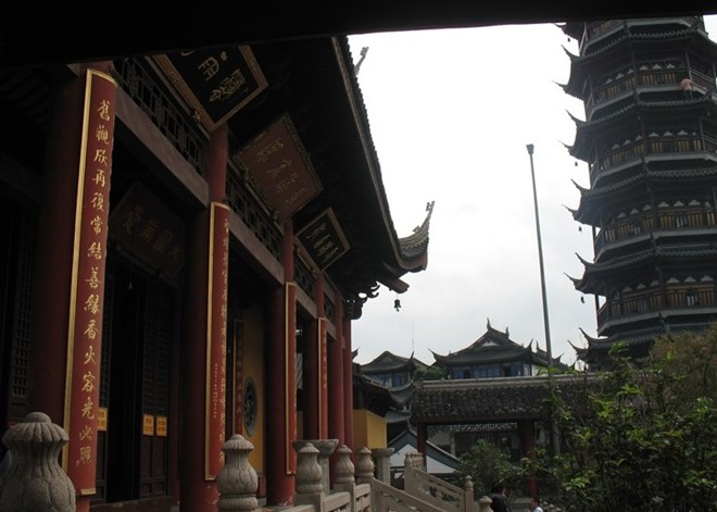 南禪寺有一座七級(jí)八面,高43.3米的古塔。傳說(shuō)是為了制服水患才把塔立在羊腰灣與運(yùn)河的交會(huì)處。 據(jù)《南禪寺記》記載,在北宋雍熙年間(984-988),有僧持缽而來(lái),走進(jìn)廟中,忽然不見(jiàn)了蹤影,后來(lái)發(fā)現(xiàn)寺壁上有該僧的影子,人們信以為佛,建造佛塔,并到蘇北泗州接來(lái)了三尊佛像。明代進(jìn)士無(wú)錫人張思安在《南禪寺重修塔碑記》中說(shuō):“院之西有溪,曰‘梁溪’,溪之脈與惠山第二泉通。父老相傳云:昔有巨蛟蜿蜒其中,每天地晦暝,輒興風(fēng)雨,噴腥濤,居民震怖,商賈懷憂(yōu)。雍熙中,有異僧駐錫于茲,諭于眾曰:蒼龍?jiān)诙私ǜ⊥溃▽毸┮枣?zhèn)之,則蛟自潛,版權(quán)所有山東聊城聊之旅國(guó)際旅行社有限公司,轉(zhuǎn)載必究!民安業(yè)矣。”這些傳說(shuō)使南禪寺名聲大振。到了北宋崇寧三年(1104),徽宗趙佶賜塔名為“妙光塔”。妙光塔歷經(jīng)元、明、清多次劫難,現(xiàn)存建筑都是明正統(tǒng)年間所建。1925年,榮宗敬、榮德生、唐申伯等出資做了修復(fù)。1930年,曾在這里設(shè)游民習(xí)藝所。1980年,人民政府撥專(zhuān)款予以全面整修。1983年被列為市級(jí)文物保護(hù)單位。1993年,妙光塔按原樣修葺一新,重新對(duì)外開(kāi)放。妙光塔系樓閣式磚塔,八角七層,總高43.3米,是“無(wú)錫八景”之一,睛日黑塔之影可以落到數(shù)里外的一座橋下,故名“塔影橋”。歷史上還有許多奇聞異說(shuō),最神奇的是相傳發(fā)出過(guò)五顏六色直沖云霄的妙光,近已有科學(xué)論證,這是雷電作怪。20世紀(jì)80年代始,南禪寺建成文化商城,規(guī)模不斷擴(kuò)大,已建成商業(yè)用房9.5萬(wàn)平方米,規(guī)劃建設(shè)12萬(wàn)平方米,似無(wú)錫的“城隍廟”,南禪寺已成為人們游玩、購(gòu)物的好去處。其中妙光街被無(wú)錫市定為旅游一條街。