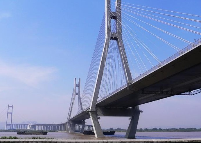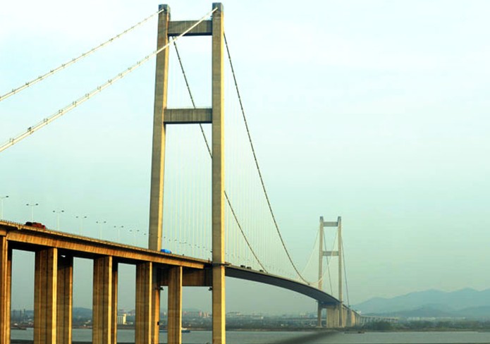 位于江蘇省鎮(zhèn)江、揚(yáng)州兩市西側(cè),為目前我國第一大跨徑的組合型橋梁,其建設(shè)過程中攻克多項(xiàng)世界性技術(shù)難題,當(dāng)時(shí)是國內(nèi)工程規(guī)模最大、建設(shè)標(biāo)準(zhǔn)最高、投資最大、技術(shù)最復(fù)雜、技術(shù)含量最高的現(xiàn)代化特大型橋梁工程,是我國第一座剛?cè)嵯酀?jì)的組合型橋梁。