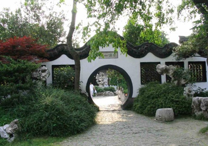 串樓長400余米,繞園一周。在串樓的窗格和壁板上刻有蘇東坡、唐伯虎、鄭板橋等人詩畫,回廊墻壁石碑上嵌有古人的詩句。回廊上的“觀園鏡”,可通觀全園景色,給人以“山外青山樓外樓”的景觀印象,充分體現了建筑藝術與自然景物融為一體之美。