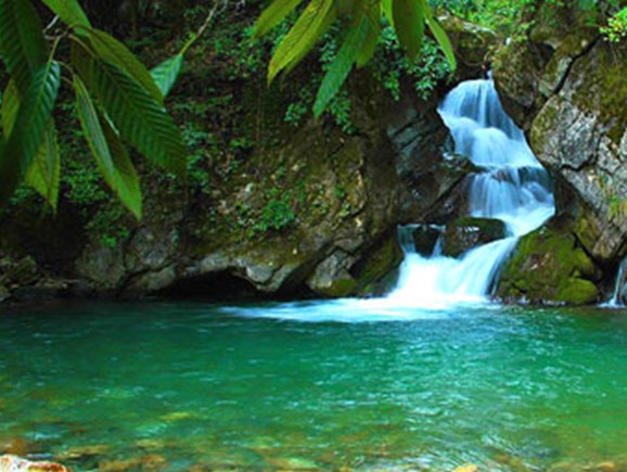 神龍溪為國家5A級風景旅游區(qū)。神農溪發(fā)源于神農架的莽莽青山之中,溪水清冽明凈,兩岸山峰奇峻。自溪口上溯20公里,依次有龍昌洞峽、鸚鵡峽、錦竹峽,又稱“神農三峽”。神農溪漂流使用的是一種形似“豌豆角”的扁舟。跨上這種古味加土味的小船,在碧水清波上悠然漂流,會使你感到一種原始的野趣。如歐陽修的一首詞所描繪的;“無風水面琉璃滑,不覺船移。微動漣漪。驚趣沙禽掠岸飛”。