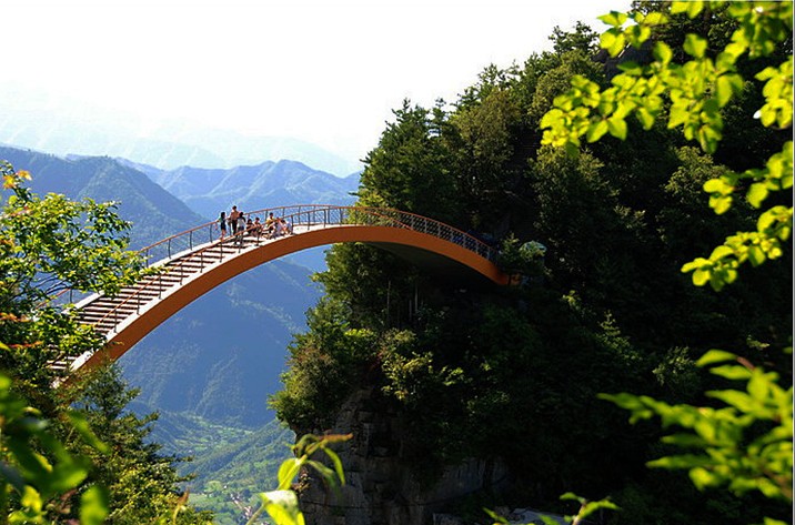 飛云渡是一座橫亙燕子埡壑口上空的全鋼結構的觀景橋,這座鋼橋懸空高、跨度大,是亞洲海拔最高的景觀橋。登上燕天飛渡,變幻莫測的自然景觀,一眼望不到邊際的原始森林,是那樣令人驚奇和癡迷。兩岸老態龍鐘的黃楊,古樸郁香的巖柏,蒼勁挺拔的冷杉,翔于林間的走獸飛禽,一切是那樣的和諧寧靜,自在而安詳。