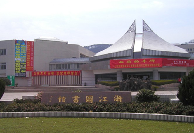浙江圖書館創(chuàng)辦于1900年,前身為杭州藏書樓,1903年改稱浙江藏書樓,1909年,定名為浙江圖書館。現(xiàn)館藏文獻約390 萬 冊(件),有舉世聞名的文瀾閣《四庫全書》,唐宋元明清時期的刻本、抄本、稿本;除中文文獻外,英、日、俄、德、法、西 班牙等文種的文獻均有一定的收藏。1998年落成的新館坐落于杭州黃龍洞風景區(qū)旁,用地面積近3公頃,建筑面積30800平方米,座席1700余個,可藏文獻450萬冊(件),是一座現(xiàn)代化的面向21 世紀的圖書館。新館連同原杭州孤山路館舍、杭州大學路館舍及湖州市南潯區(qū)嘉業(yè)藏書樓共同組成新的浙江圖書館,為全省人民服務,為社會主義現(xiàn)代化建設服務。