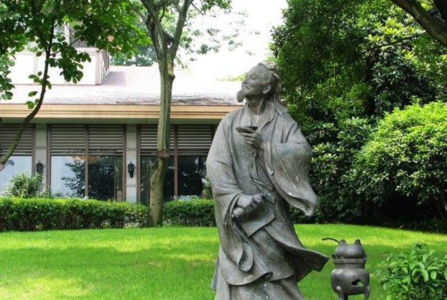 茶圣陸羽的仙風(fēng)道骨讓人駐足不前,遠(yuǎn)眺群山的陸羽,激發(fā)了人們對(duì)先賢的緬懷。茶博陸羽像為青銅制,高約2.5米,并配有低矮的茶桌,置茶爐、茶杯等品茗用具于上,陸羽則站立于旁,衣袂飄然,左手持一茶碗,右手持一茶書(shū),回味著唇齒之間的茶香余韻,神態(tài)自若,氣勢(shì)生動(dòng)。
