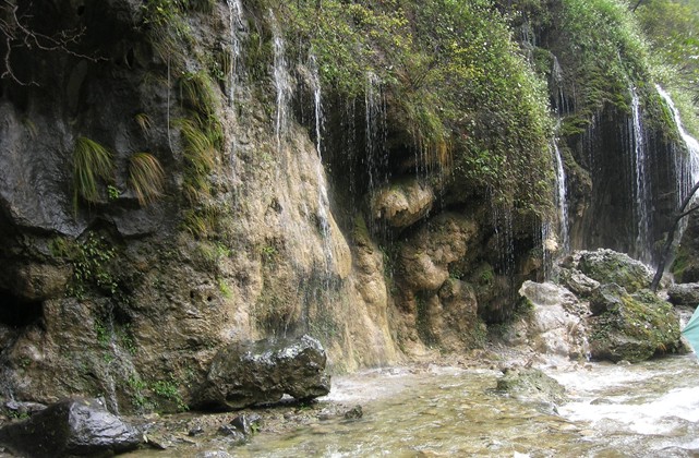 8. 水簾洞,天然洞穴,洞頂為水草石檐,石檐上掛有一條高七八米的珠簾。水珠條條線線如晶瑩剔透的珍珠從洞頂垂下。