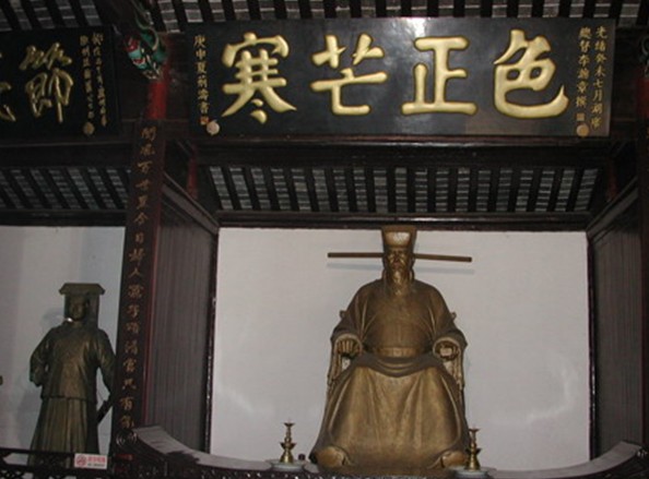 元代詩人王惲賦詩贊日:“拂拭殘碑覽德輝,千年包范見留題。驚烏繞匝中庭柏,猶畏霜威不敢棲。”頃揚包公和范件淹的盛德和威名光耀千古,把貪宮污吏比作可惡的烏鴉,即使千百年后,見其碑猶如見二公其人,仍諒懼萬分,不敢近前逗留。可見“包青天”名不虛傳;東西展殿則以圖文并茂的形式,展示包公的傳說軼聞,歷史故事,特別是東殿的群組蠟像《鍘美案》與真人大小一樣,色彩鮮明、形神俱備、毫發俱現、栩栩 如生,倍受中外游客贊揚。