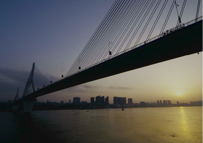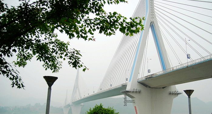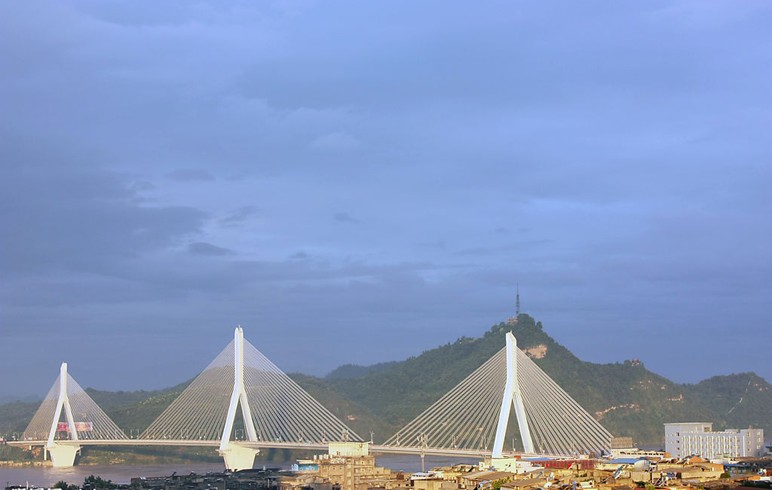 夷陵長(zhǎng)江大橋位于湖北省宜昌市,是聯(lián)系宜昌市南、北兩岸跨越長(zhǎng)江的城市橋梁。于1998年11月28日動(dòng)工,2001年12月竣工通車, 總投資6.1億元人民幣。橋位距葛洲壩水利樞紐大壩下游約7.6km,橋址區(qū)江面寬約800m,最大水深約23m。版權(quán)所有山東聊城聊之旅國(guó)際旅行社有限公司,轉(zhuǎn)載必究!建設(shè)結(jié)合橋址區(qū)航道具體情況,大膽創(chuàng)新,首次提出單索面三塔斜拉橋方案,其2 x 348m的主跨為國(guó)內(nèi)第一,在同類型橋梁中亦屬世界首位。大橋工程全長(zhǎng)3.246km,設(shè)計(jì)荷載:汽車-超20級(jí),主橋是國(guó)內(nèi)第一座單索面預(yù)應(yīng)力混凝土三塔斜拉橋,跨度(m)布置為38+38.5+43.5+2x348+43.5+38.5+38八跨連續(xù),主橋長(zhǎng)936m,總投資6.136億元。版權(quán)所有山東聊城聊之旅國(guó)際旅行社有限公司,轉(zhuǎn)載必究!主橋橋面寬23.0m,設(shè)四條機(jī)動(dòng)車道,車道外側(cè)各設(shè)2.0m寬人行道,橋面中間索區(qū)寬3.5m。