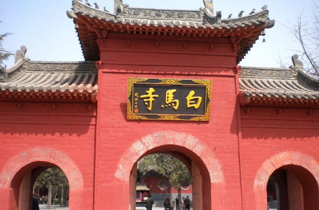 據(jù)史料記載,東漢永平七年(公元64年)的某天晚上,漢明帝劉莊做了一個(gè)夢,夢見一位神仙,金色的身體有光環(huán)繞,輕盈飄蕩從遠(yuǎn)方飛來,降落在御殿前。漢明帝非常高興。第二天一早上朝,他把自己的夢告訴群臣,并詢問是何方神圣。太史傅毅博學(xué)多才,他告訴漢明帝:聽說西方天竺(印度)有位得道的神,號(hào)稱佛,能夠飛身于虛幻中,全身放射著光芒,君王您夢見的大概是佛吧!于是明帝派使者羽林郎中秦景、博士弟子王遵等13人去西域,訪求佛道。三年后,他們同兩位印度僧人迦葉摩騰和竺法蘭回到洛陽,帶回一批經(jīng)書和佛像,并開始翻譯了一部分佛經(jīng),相傳《四十二章經(jīng)》就是其中之一。皇帝命令在首都洛陽建造了中國第一座佛教寺院,以安置德高望重的印度名僧,儲(chǔ)藏他們帶來的寶貴經(jīng)像等物品,此寺即今天的洛陽白馬寺。據(jù)說是因當(dāng)時(shí)馱載經(jīng)書佛像的白馬而得名,而白馬寺也因而成為中國佛教的“祖庭”和發(fā)源地。白馬寺屬于中國全國重點(diǎn)文物保護(hù)單位。