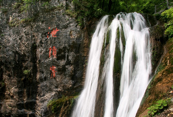 泄憤崖瀑布,是景區內最大的瀑布,達百米以上,有三級所構成,水勢分飛、急、慢。最高的一級是虬龍狂奔,中間的是虬龍泄憤,最低的是余怒未消。站到這里,你可領略到氣浪撲面而來。倘若是晴天水霧可彌漫到30米之外。這里的負氧離子的含量特別高,每立方厘米的含量達到68000個。在這里做個深呼吸可以洗漬心肺的。特別是愛抽煙喝酒的男士,更要抓住大自然賜予健康的機會,做做深呼吸,這樣便于血流減慢、心跳負擔減輕。緊張的神經系統可松弛下來,人們的嗅覺,聽覺和思維活動的靈敏也增加了許多。不僅如此,如果有什么不滿的話,可以在這里盡情發泄的,這也是個免費的發泄場所,因此稱做為泄憤崖。