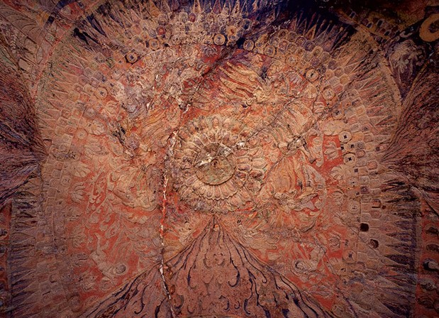 景明元年至正光四年(公元500-523)營造,洞窟平面呈馬蹄形,穹隆頂,深12米,寬10.90米,高9.3米,正壁雕主佛釋迦牟尼坐像及二弟子、二菩薩,南北壁均一立佛二菩薩。佛、菩薩體態修長,表情溫和,神采飄逸,是北魏晚期風行的“秀骨輕像”的典型代表。地面刻蓮花圖案裝飾,示意蓮花寶池??唔斨虚g浮雕一朵盛開的大蓮花。版權所有山東聊城聊之旅國際旅行社有限公司,轉載必究!周圍有八身伎樂和兩身供養天,加之流蘇帷幔構成一蓮花寶蓋。前壁有維摩詰變相、太子舍身飼虎圖,須達那太子施舍圖和皇后、皇帝禮佛圖(已被盜走)等大型浮雕圖像及十神王像。1978年為保護洞窟雕刻拆除磚卷門洞。使鮮為人知的四頭四臂、一頭四臂護法天重見天日。