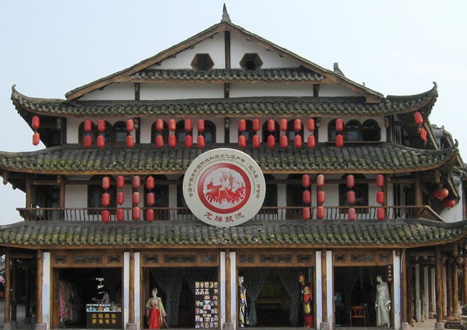 古鎮不大,很有“水城”的味道,一水劃鎮而過,兩岸都是用青石鋪成的石板路,有些地方還存有昔日的棚廊。水面有數座鐵吊橋連接,河畔有一株古榕,盤根錯節,據說有近千年的歷史,是古鎮的標志,游人每到此,總要在此留影。黃龍溪的魚也是一絕,老人們說:“七上八下九歸沱”,說的是每年從小寒、大寒節氣到次年七月,下游的魚兒成群結隊溯江而上到此產卵,所以黃龍溪魚產甚豐。當地最地道的吃魚方法是在船上,來一鍋“河水煮活魚”,看似粗鄙的吃法卻能讓人盡享野味之鮮美。 古鎮里明清木柱青瓦的吊檐民居比比皆是,沒有官府和大宅,老式民居的一磚一瓦間無不流露出質樸氣息。1983年,當黃龍溪古鎮還藏在深閨無人識的時候,峨嵋電影制片廠的《卓文君與司馬相如》就選這里做外景地,后來,《海燈法師》、《芙蓉鎮》、《家春秋》等多部影視劇也在此拍攝。因為這里原汁原味的古鎮風情,是那些人造影視城根本無法比擬的。小鎮中有一條街道因過于老化,推倒后按照過去的風格仿建,但一眼望過去,卻怎么也脫不了仿的氣息。