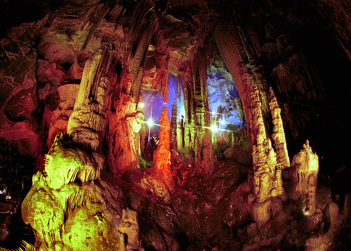 洞分上下兩層、內(nèi)有三廳四宮、天公造就的鐘乳石群、似人似鳥、似花似錦、觀音蓮臺、果老獻壽、天河流水、仙女曬衣、太白醉酒、犀牛望月、桃園結(jié)義、神龜戲水、仙洞石林、銀河沙灘、造型逼真、世人稱絕、進洞一游、奇妙無比。野人洞是一個多徑洞口,洞內(nèi)藏山,山中有洞,變化多端的巨大溶洞洞外百怪,似飛鳥、走獸或單獨成景,或組合成趣,天工巧作,惟妙惟肖,形成數(shù)百處鐘乳奇觀;洞中泉水潺潺,四季長流,奇石映水,色彩各異,掛瀑、水簾、龍?zhí)丁⑺谓鹋璧龋瑹o不使人稱奇贊絕。現(xiàn)已探明洞深1200多米,面積為15400平方米,尚待繼續(xù)探險考察。