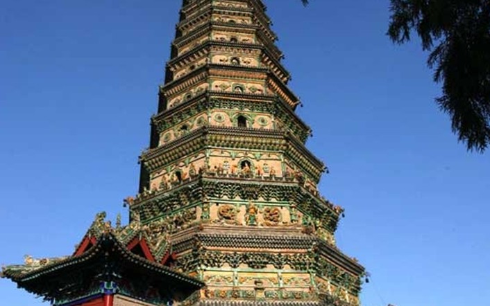 密檐之上,即為塔剎,自上向下由寶珠、七重相輪、寶裝蓮花式覆缽等組成,高約3.5米。全塔外部,原來都敷以白灰皮。版權所有山東聊城聊之旅國際旅行社有限公司,轉載必究!塔室內空,由四面券門可至。塔室上層以疊澀內檐分為10層,最下一層內壁仍作十二邊形,二層以上,則改為八角形。這種富于創造與變化的建造工藝,表現出我國勞動人民的高超建筑才能。