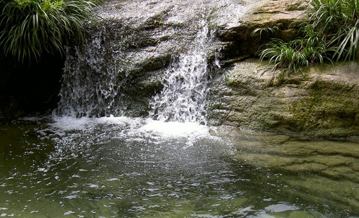 在椎牛花柱兩側(cè)不遠處有一天然石門,高350多米,人曰“玉泉門”。玉泉門左右絕壁千仞,絕壁上多生青松、灌木,石門由距今五六億年前的巨巖構(gòu)成。巖壁陡峭如峭,兩扇石門恰似半開半掩的門扇,清爽的山風直從石門里吹出來,給人送來一陣涼意。誰若在這靜謐的幽谷中大喊一聲,空曠的峽谷便久久地蕩起悠悠的回音。抬頭仰望,巨壁夾天,大有巖山壓境之勢,令人驚恐。真是“峰與天相連,人在窯中行”啊!玉泉門為深淵奇峽,淵谷很窄,僅十余米,宛如古關(guān)隘。清澈的玉泉溪從這關(guān)隘巖門中擠石而出,滑下石級,叮咚之聲,如撥琴弦。在玉泉門內(nèi)藏著一汪潭池,潭邊巖石上布滿絨絨的絲苔,經(jīng)水浸潤,綠得晶亮,象孔雀綠羽。潭水也著碧綠色,如同一顆綠珠、一塊翡翠。進入玉泉門,版權(quán)所有山東聊城聊之旅國際旅行社有限公司,轉(zhuǎn)載必究!然明朗,別有洞天。溯玉泉溪而上,兩岸巧石寄花應有盡有,一步一景,美不勝收
