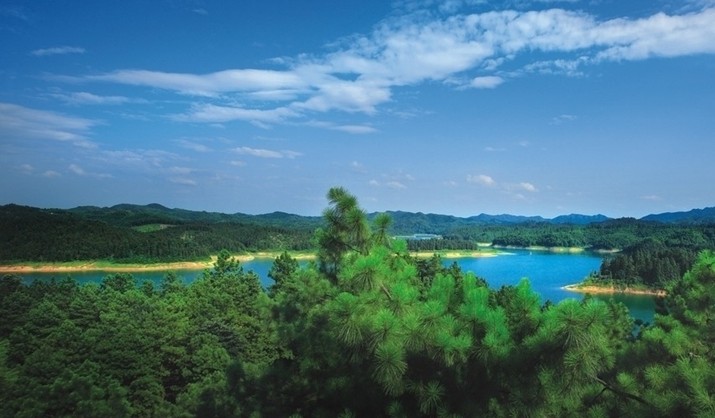 水涌青螺——暮春時節(jié),五溪湖水位上升。湖中的小島仿若青螺,錯落有致地排列在水面,若沉若浮,似動非動,蕩漾于粼粼碧波之中,展現(xiàn)在朝曦夕陽之下,若乘小舟蕩漾其中,則詩情畫意,妙趣無窮。