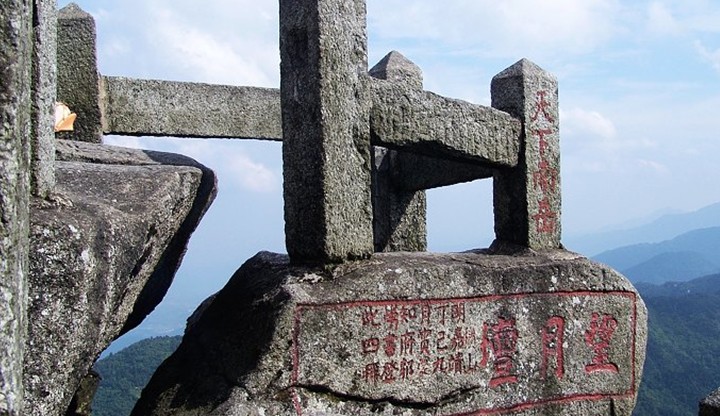 現(xiàn)在山頂?shù)淖H诘钍乔迩∈辏?751年)下詔重建的,石墻鐵瓦。祝融君這位職掌南離的火正宮,經(jīng)過(guò)歷代帝王的神化和加官進(jìn)爵,由隋、唐兩代的“司天王”到宋朝的“司天昭圣帝”,制擬帝王,祀以國(guó)典。祝融殿自清朝乾隆重修后,因風(fēng)霜蝕剝,民國(guó)二十一年,時(shí)任湖南省主席的何鍵又捐資重修。1982年南岳管理局重新翻修,始成為現(xiàn)在的面貌。祝融殿高踞祝融峰頂,構(gòu)筑在一個(gè)奇石重壘、風(fēng)急云涌的百多平方米的頂隙里,可以想見(jiàn)當(dāng)年建筑的艱辛。從祝融峰麓的上封寺到峰頂?shù)淖H诘睿谢◢徥穼訉犹萁拥椒屙數(shù)紫拢穬膳裕沙芍瘢交€漫,頗為潔致。從峰頂?shù)啄_通到祝融殿山門(mén)前石砌平臺(tái),有三十多級(jí)陡峻的花崗石臺(tái)階。山門(mén)是座牌坊式建筑,牌坊上有“祝融峰”三字石額,卻未額為“祝融殿”。門(mén)兩側(cè)有對(duì)聯(lián):“寅賓出日,峻極于天。”前者指清晨五到六點(diǎn)時(shí)太陽(yáng)升起,后者說(shuō)祝融峰頂比天還高峻。這副對(duì)聯(lián)的句子集自《詩(shī)經(jīng)》,對(duì)仗工穩(wěn),渾然天成,又切合祝融峰頂景物,極具匠心。祝融殿右側(cè)走廊有另一條小門(mén)通向望月臺(tái)。望月臺(tái)比祝融殿正殿基約高2-3米,是花崗巖風(fēng)化后裸露而成。整塊巖面不到4.5平方米,靠邊處圍上石欄,既可臨風(fēng)小坐,也可憑石欄桿眺望。因?yàn)樗亲罡唿c(diǎn),所以空景無(wú)際,山風(fēng)襲人,瀟湘帆影,遠(yuǎn)近山巒,盡奔眼底。望月臺(tái)石上原有不少石刻,因?yàn)榭淘谂_(tái)面石上,版權(quán)所有山東聊城聊之旅國(guó)際旅行社有限公司,轉(zhuǎn)載必究!風(fēng)雪侵蝕,游人摩挲、踐踏,許多已漸磨滅。現(xiàn)存的有明朝嘉靖丁巳(1577年)九月寶慶知府書(shū)刻“望月壇”三個(gè)約50厘米見(jiàn)方的字,鐫刻在巖的內(nèi)壁上,楷書(shū)橫排。其余在臺(tái)石上與臺(tái)內(nèi)外峭壁上的石刻還清晰可辨的有“竣極”、“仰止處”、“果是高”、“青云在望”、“青云滿(mǎn)袖”、“山不厭高”、“覺(jué)夢(mèng)處”、“千維綠”、“天外幽賞”、“壽比南山”、“唯我是高,尊峙寰中”等等,大都不知是何年何代刻品。