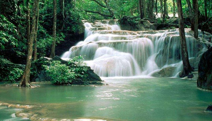 閨門初開:公園入口是一座大圓門,左右兩邊聳立著石柱。走進這里,地貌突變,兩邊懸巖峭壁高聳入云,中間一溪碧水潺潺流過。人稱張家界是"養在深閨人未識"的美女,故此景名為"閨門初開"。