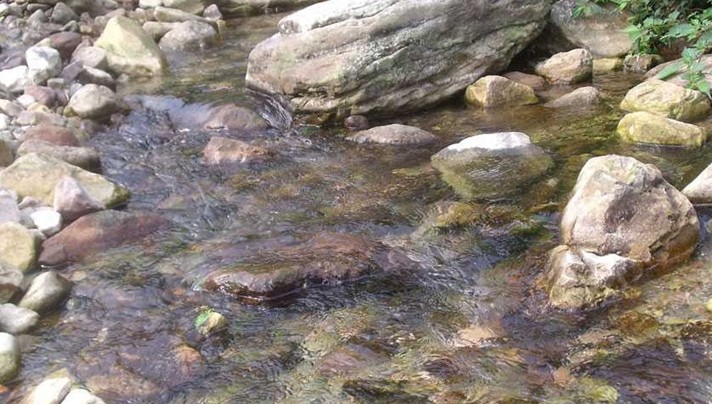 水明石美,如一灣天然盆景,美石堆堆,水波搖影,有的像野馬奔馳,有的如綿羊吃草,有的若猴兒撈月,有的似玉兔臨空飄搖。這里岸邊的巖石就如溶洞里的一個樣琳瑯滿目,無奇不有。所不同的是鐘乳石長期裸露,都不同地 蒙上了苔蘚的綠色,一些綠草和灌木穿插其間,使自然光照的美與溶洞之美融為一體。這里傳說是古時候科洞毛人征戰凱旋返回司城途中,百姓唱山歌,跳擺手舞,慶賀戰斗勝利的場所?,F逢節日,附近的男女青年便匯集于此,歡聚一堂,洗衣,撒網,談笑嬉鬧,更多的是對歌談戀愛,因此此地又叫山歌臺,這兒還留下了古時候的一首山歌:鸚哥燕舞情滿山,鑼鼓聲聲落水天,極樂仙竟在何處,借問此地山歌郎。