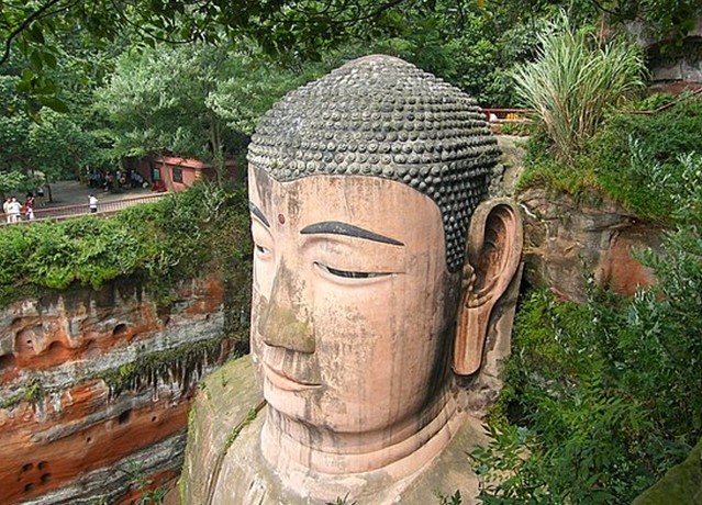 樂山大佛,又名凌云大佛,地處中國四川省樂山市,岷江、青衣江和大渡河三江匯流處,與樂山城隔江相望。樂山大佛雕鑿在岷江、青衣江和大渡河匯流處巖壁上,依岷江南岸凌云山棲霞峰臨江峭壁鑿造而成為彌勒佛坐像,是唐代摩巖造像的藝術精品之一,是世界上最大的石刻彌勒佛坐像,國家5A級旅游景區 。