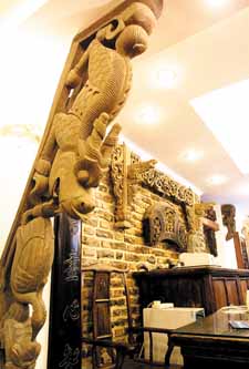 粵唯鮮位于天津小洋樓集中區(qū)域—五大道附近,這里不僅僅是家餐廳,它的另一個招牌是華蘊(yùn)博物館,馮驥才為它題詞:“能吃的博物館”,也算是中國唯一了。華蘊(yùn)博物館所陳列的展品囊括了西周至清朝各個歷史時期最典型的青銅器、銅器、木雕、石器、老門窗、彩繪木人、煙具、屏風(fēng)、座鐘、桌椅、木箱、提盒、老鐵、鐘等100多種的3000余件文物最早的可追溯到公元二三千年前。華蘊(yùn)博物館的特色之處還有世界上第一的石頭酒吧。粵唯鮮的石頭酒吧開創(chuàng)了石文化第一,這里擺放的石頭多是漢白玉的,囊括了北齊、北魏、宋元明清等朝代的300余塊石頭。而且石頭酒吧所收藏的漢白玉石器無論是其數(shù)量還是質(zhì)量在全國乃至全世界都是一流的。酒吧的格調(diào)是中西合璧,古樸、不失現(xiàn)代風(fēng)格。