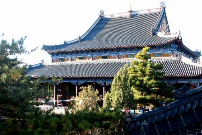 。共四十九間,高20米,占地面積676平方米,殿內有高大龍井柱4棵,彩虹抱柱34棵,殿外環廊米紅抱柱28棵,殿檐上繪36幅《西游記》彩繪畫等。現在該殿為喇嘛念經和舉行法會的場所,殿內供奉的佛像中間是玻璃鋼精雕的釋迦牟尼佛和兩個弟子阿難、迦葉;西側為阿彌陀佛;東側為藥師佛及白度母等36尊懸掛的塑像。1998年7月26日開光供奉。