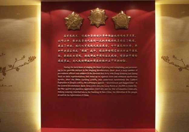 立體梯型建筑,4米高的銅門,威嚴,進門赤紅紅七軍石浮雕,走入潔凈的每個展覽廳:起義廳、英雄廳、將軍廳、分為3層。有在廣西各個縣參與起義就義英雄名單。300多行,每行12個名字,3000多人。