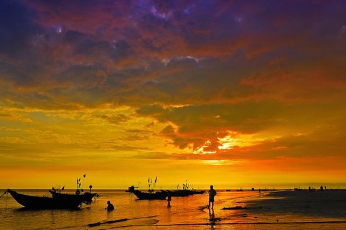 石螺口海灘和其它的景點(diǎn)都不一樣,即有國(guó)內(nèi)其它地方海灘的那種浪漫,又有潿洲島特有的原始與自然。石螺口海灘的沙子很漂亮且很松軟,在陽(yáng)光的照射下很白,刺的人睜不開(kāi)眼晴。天空與白云、海水與浪花、沙灘與茅草棚、漁船與遠(yuǎn)處的風(fēng)景、戴著斗笠織網(wǎng)的漁民與躺在太陽(yáng)傘下戴著太陽(yáng)鏡的游客,很自然地構(gòu)成一幅無(wú)可言說(shuō)的風(fēng)景。