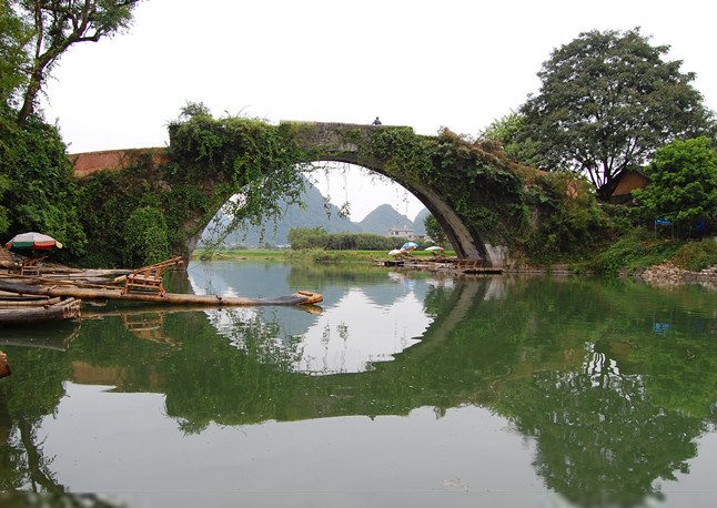 走進遇龍河流域,你不但看得到“精縮”了的漓江山水,還可以看到古色古香的村落,十分風趣的水車,造型各異的古橋。這是一條很有文化品位的河,有水、有山、有竹、有草、有橋梁、有水車、有建筑。其透視出來的歷史氛圍和歲月滄桑,明顯要優于漓江。