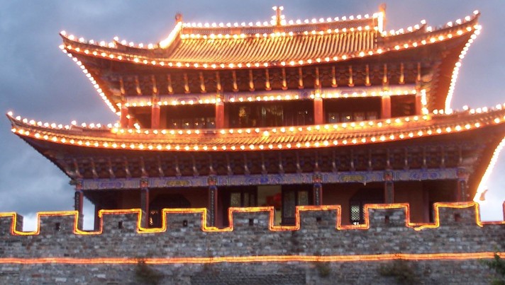 大理古城簡稱葉榆,又稱紫城,其歷史可追溯至唐天寶年間,南詔王閣邏鳳筑的羊苴咩城(今城之西三塔附近),為其新都。現(xiàn)在的古城始建于明洪武十五年(公元1382年),方圓十二里,城墻高二丈五尺,厚二丈。東西南北各設(shè)一門,均有城樓,四角還有角樓。解放初,城墻均被拆毀。1982年,重修南城門,門頭“大理”二字是集郭沫若書法而成。 由南城門進(jìn)城,一條直通北門的復(fù)興路,成了繁華的街市,沿街店鋪比肩而設(shè),出售大理石、扎染等民族工藝品及珠寶玉石。街巷間一些老宅,版權(quán)所有山東聊城聊之旅國際旅行社有限公司,轉(zhuǎn)載必究!也仍可尋昔日風(fēng)貌,庭院里花木扶疏,鳥鳴聲聲,戶外溪渠流水淙淙。“三家一眼井,一戶幾盆花”的景象依然。古城內(nèi)東西走向的護(hù)國路,被稱為“洋人街”。這里一家接一家的中西餐館、咖啡館、茶館及工藝品商店,招牌、廣告多用洋文書寫,吸著金發(fā)碧眼的“老外”,在這里流連忘返,尋找東方古韻,漸成一道別致的風(fēng)景。