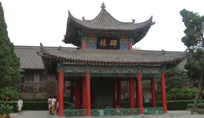碑林博物館位于西安市文昌門內三學街15號,原為陜西省博物館,建于1944年,它是在具有900多年歷史的“西安碑林”基礎上,利用西安孔廟古建筑群擴建而成的一座以收藏、研究和陳列歷代碑石、墓志及時刻造像為主的藝術博物館。館區由孔廟、碑林、石刻藝術室三部分組成,現有館藏文物11000余件,11個展室,陳列面積4900平方米。博物館本身即為孔廟舊址,其建置可追溯到北宋末年。照壁、牌坊、泮池、欞星門、華表、戟門、碑亭、兩廡等明清建筑保存至今,并遵循著孔廟固有的建筑格局,組成了一個綠樹掩映、古樸典雅的庭院式建筑群。