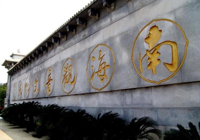南海觀音寺按明、清時期的宮庭式建筑風(fēng)格設(shè)計(jì)(仿故宮宮殿式)畫棟雕梁,檐廊彩繪,全是清朝保留的藝術(shù)。全寺分三層,一層比一層高。建筑雄偉大有布達(dá)拉宮之勢。全寺有九個殿(觀音殿、大雄寶殿、天王殿、鐘樓、鼓樓,四個側(cè)殿)。