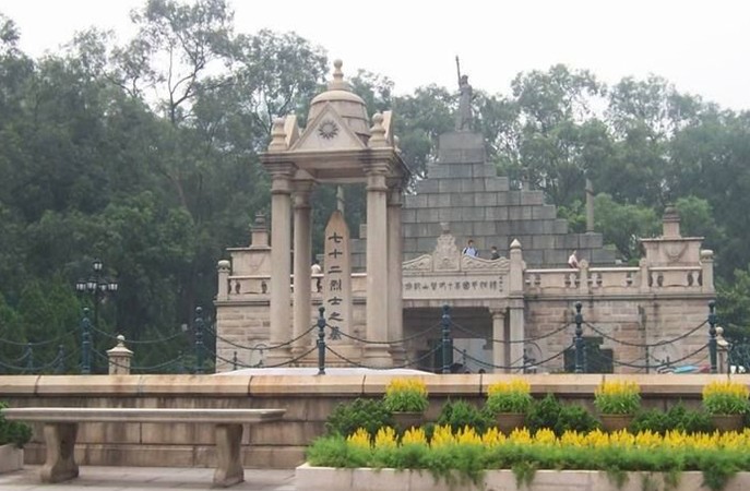 1911年4月27日(農歷3月29日),孫中山先生領導的同盟會為推翻清王朝的統治,在廣州舉行起義,結果失敗,喻培倫等86人(一說100余人)英勇犧牲,其中華僑29人。同盟會會員潘達微,冒著生命危險把散落的七十二烈士遺骸收殮安葬于紅花崗(后改名“黃花崗”,黃花即菊花,比喻節烈),史稱“黃花崗七十二烈士”。黃花崗墓園始建于1912年,至1921年烈士墓和紀功坊先后落成。孫中山書“浩氣長存”四字鐫于墓坊。入門是寬敞的墓道,長200米。烈士墓構筑在崗陵之上,居于墓臺當中,紀功坊峙立墓后。墓道兩旁蒼松翠柏,烘托出滿園黃花輝映碧血的莊嚴肅穆氣氛。南墓道為碑林,鐫刻有“自由魂”“精神不死”等碑文,字字語重千鈞。兩條3米多高的連州青石透雕龍柱,夾道相對。