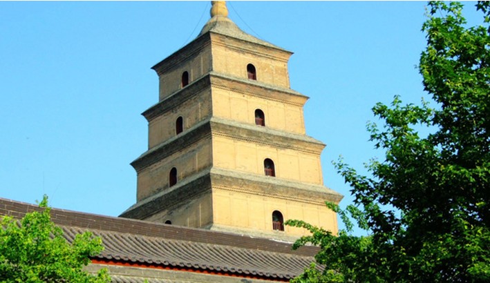 唐朝高僧玄奘于公元629年至645年間,在印度游學時,瞻仰了這座雁塔?;貒?,在慈恩寺譯經期間,為存放從印度帶回的經書佛像,于公元652年,在慈恩寺西院,建造了一座仿印度雁塔形式的磚塔,這座塔就叫雁塔。名稱延續至今未變。