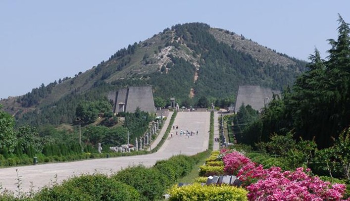 乾陵位于乾縣城北6公里的梁山上,是唐高宗李治和女皇帝武則天的合葬墓陵,墓因山為陵,氣勢雄偉壯觀。從乾陵頭道門踏上石階路,走完臺階即是一條平寬的道路直到“唐高宗陵墓”碑,這條道路便是“司馬道”。兩旁現有華表1對,翼馬、駝鳥各1對,石馬5對,翁仲10對,石碑2道。東為無字碑,西為述圣記碑。有王賓像61尊,石獅1對,周圍還有17座陪葬墓。“唐高宗陵墓”墓碑,高2米,是陜西巡府畢源為高宗所立,原碑已毀,現在這塊碑是清乾隆年間重建的。此碑右前側另一塊墓碑,是郭沫若題寫的“唐高宗李治與則天皇帝之墓”12個大字。乾陵附近還有永泰公主墓、章懷太子墓及懿德太子墓。