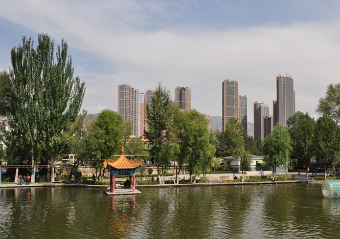 西寧人民公園始建于1959年,位于城西湟水與北川河交匯處南岸。始建時,總面積36公頃,后經數次擴建,現占地40余公頃,是西寧市最大的公共游樂公園。園內游樂設施主要有:花卉區、人工湖、露天劇場、燈光球場、兒童游戲場和餐廳、茶室等游樂觀賞服務設施。園區綠樹成蔭、曲徑回廊、水閣相間、鳥語花香、十分清雅,被稱為“人工繡景”,居西寧新八景之首。