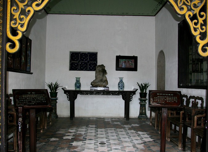 “雙清”之后,是“問花小院”,為主人賞花之處。順環碧廊步出“問花小院”,來到一處廣闊空間,園中花叢果壇,滿目青翠,被稱為“壺中天”。“壺中天”無任何建筑,它是倚著四面的樓房而形成的一方獨立的空間,是園主人下棋喝茶的小天地。從這里出后庭,廣闊的可湖展現眼前,讓人身心大暢。