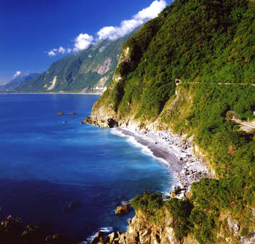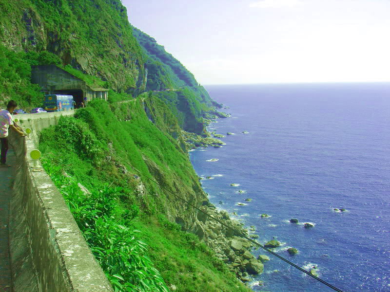 車過崇德大隧道,可見蘇花公路鑿壁而筑。一道凹槽仿佛鑲刻在高距海面數百米的崖腰上,隨突向海面的參差巖壁而曲折回轉,盤旋若龍。遠看公路,好像纏繞在危崖腰部的腰帶,又似摩天大廈高層的一道沒有欄桿的懸空陽臺走廊,汽車在上面飛馳,稍有不慎,便要滾入幾百米下的太平洋中。坐車的人掠崖凌空,臨海觀潮,大有驚心動魄之感。車過清水崖,穿過若干隧道,便到和平站,再向版權所有聊城聊之旅旅行社有限公司,轉載必究!北,便是蘇花公路北段,直抵蘇澳漁港。