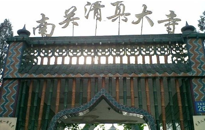 中國伊斯蘭教清真寺。位于寧夏回族自治區銀川市南關。據傳原寺始建于明朝末葉,系一中國古典式建筑群。規模宏大,布局嚴整。禮拜大殿有前廈后室。殿堂門窗為紅松木,雕刻工藝精美。南北廂房布置得體。“文化大革命”中被拆毀。1981年8月重建。新建寺面積為2074平方米,分上下兩層。禮拜大殿設于樓上,呈正方形,長寬各21米,宏偉壯麗。中部有綠色瓷磚飾面的4根方柱,殿頂為直徑9.5米的巨型穹頂。穹頂底部與方柱之間為一段圓柱體的鼓座,上開24扇高窗,寬敞明亮,視野開闊。穹頂正中高懸月形燈,跨地面22米,高聳入云。下層為小禮拜殿、男女沐浴室、會客室、宿舍等。其間有回廊相連,自成一體。整個建筑典雅華美,莊重宏偉,呈現出典型的阿拉伯建筑特色。