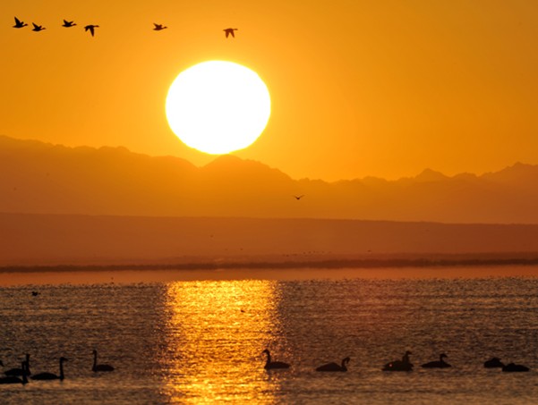 每年初春,可魯克湖和托素湖的冰開始融化時,成群的黑頸鶴、斑頭雁、魚鷗、野鴨等珍禽,從遙遠的東南亞諸島飛到可魯克湖和托素湖一帶筑窩壘巢、生兒育女。黑頸鶴喜歡在可魯克湖邊沼澤地和在蘆葦叢中筑巢棲息,斑頭雁、灰雁則原意在兩湖之間的沙丘上壘窩居住,魚鷗、棕頭鷗、野鴨等大都在托素湖中的鳥島上群聚。版權所有山東聊城聊之旅國際旅行社有限公司,轉載必究!托素湖鳥島面積約有一平方公里,島上的鳥兒成千上萬,整個島嶼窩巢遍地、鳥蛋累累,簡單是“鳥兒樂園”和“蛋的世界”。可魯克湖和托素湖,被國家列為自然保護區。