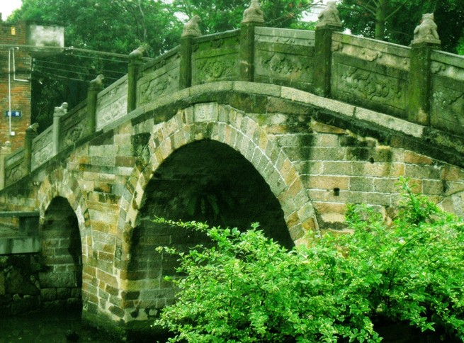 該橋兩邊斜道不砌石級(jí),版權(quán)所有山東聊城聊之旅國(guó)際旅行社有限公司,轉(zhuǎn)載必究!行人來(lái)往象上下斜坡一樣,古代車(chē)馬過(guò)橋,可暢通無(wú)阻。站在橋上左右眺望,寬闊的河涌?jī)砂叮R的石砌墻緊靠河壁。蕉林蔗地上,舊日店鋪基礎(chǔ)依稀可辨,為我們勾勒出一幅繁榮的古代水鄉(xiāng)市集景象。