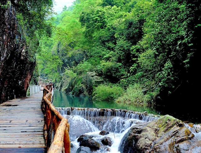 對于大多數(shù)來白水寨觀光的游客來說,最吸引他們的莫過于是那道中國內(nèi)地落差最大的瀑布了!登山觀瀑,親近山水,版權(quán)所有山東聊城聊之旅國際旅行社有限公司,轉(zhuǎn)載必究!在炎熱的夏天享受屬于高山的清涼,更讓人感覺無比快意。在白水寨登山,除了號稱“天南第一梯”的登山步道,濱水而建的親水棧道其實更得游客歡心。它貼著溪流,指向山谷深處,沿途都有綠蔭遮蔽。走在上面時,清新的空氣、和煦的山風(fēng)與溫暖的陽光伴隨著滿山的翠綠和潺潺的流水聲而來,感覺總是那么舒服,所以人們走得特別慢,為的就是一邊好好地欣賞周遭的美景,一邊盡情呼吸高山流瀑釋放出的美妙空氣!