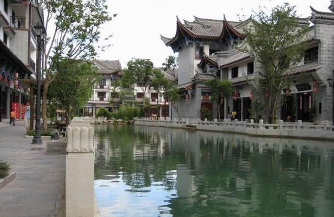 ⒊桃花溪:溪水碧流貫穿古鎮(1、2期)中部,通過溪上各式石橋、欄桿、水景設施等展示了彝族歷史上重要的史實和對歌習俗。