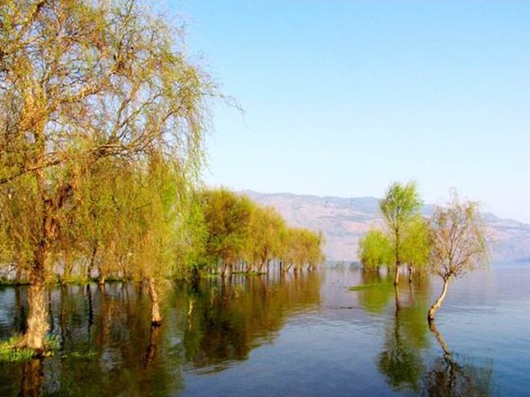 在茈碧湖中,還有一種罕見的自然景觀,叫“水花樹”。每當風和日麗的日子,如果乘船到湖心,就有可能欣賞到這樣的奇景:版權所有山東聊城聊之旅國際旅行社有限公司,轉載必究!在碧綠透明的深水中,從下而上,冒出一串串晶亮的水珠,在陽光的映照下,就像一株掛滿珍珠的玉樹。