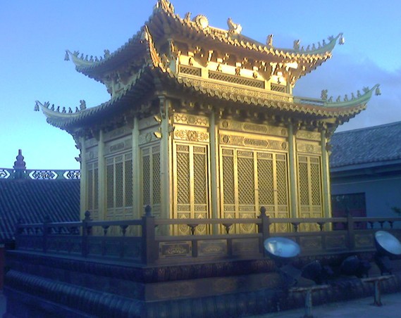 明鑄金殿,在"文革"期間被毀。除了楞嚴(yán)塔外,金頂寺保存較為完好的還有"大門"。這道大門是由白族藝人設(shè)計(jì)的,充分體現(xiàn)了白族精湛的建筑工藝水平。版權(quán)所有山東聊城聊之旅國際旅行社有限公司,轉(zhuǎn)載必究!門頂橫列正脊,兩端垂脊,飛檐翹角,凌空欲飛,形式美觀、大方。進(jìn)入大門,彌勒殿前供奉彌勒佛像,殿后塑韋陀菩薩像。楞嚴(yán)塔后的大雄寶殿里,供奉著釋迦牟尼佛像,佛像兩側(cè),分別塑有阿難尊者、迦葉尊者、達(dá)摩祖師、六臂護(hù)法王像。
