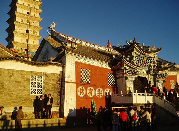 金頂寺位于雞足山主峰天柱峰極頂,海拔3240米,東距祝圣寺55公里。天柱峰因高峻挺拔,狀如擎天巨柱而得名,又因在此可東觀日出,南觀彩云,西觀蒼洱,北觀玉龍雪山而被稱為"四觀峰"。版權(quán)所有山東聊城聊之旅國際旅行社有限公司,轉(zhuǎn)載必究!現(xiàn)在的金頂寺,由睹光臺(tái)、大門、彌勒殿、楞嚴(yán)塔、大雄寶殿等組成,是游覽雞足山必去的重要景點(diǎn)。