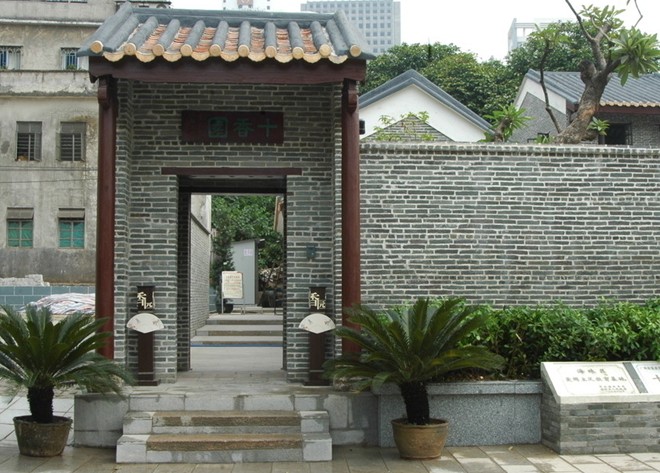 十香園位于廣州市海珠區(qū)昌崗中路懷德大街3號(hào)。為清末著名畫家居廉、居巢兄弟的居住、作畫及授徒之所。占地640平方米,四周以青磚砌墻圍成小院。園內(nèi)種有寫生用的素馨、茉莉等10種香花,故名十香園。現(xiàn)存紫梨花館一座。館內(nèi)西部為居巢授徒處,嶺南畫派創(chuàng)始人高劍父、陳樹人均曾學(xué)畫于此。著名作家朱千華先生在其園林文化隨筆集《雨打芭蕉落閑庭•嶺南畫舫錄》中,對(duì)“十香園”有詳盡記述。