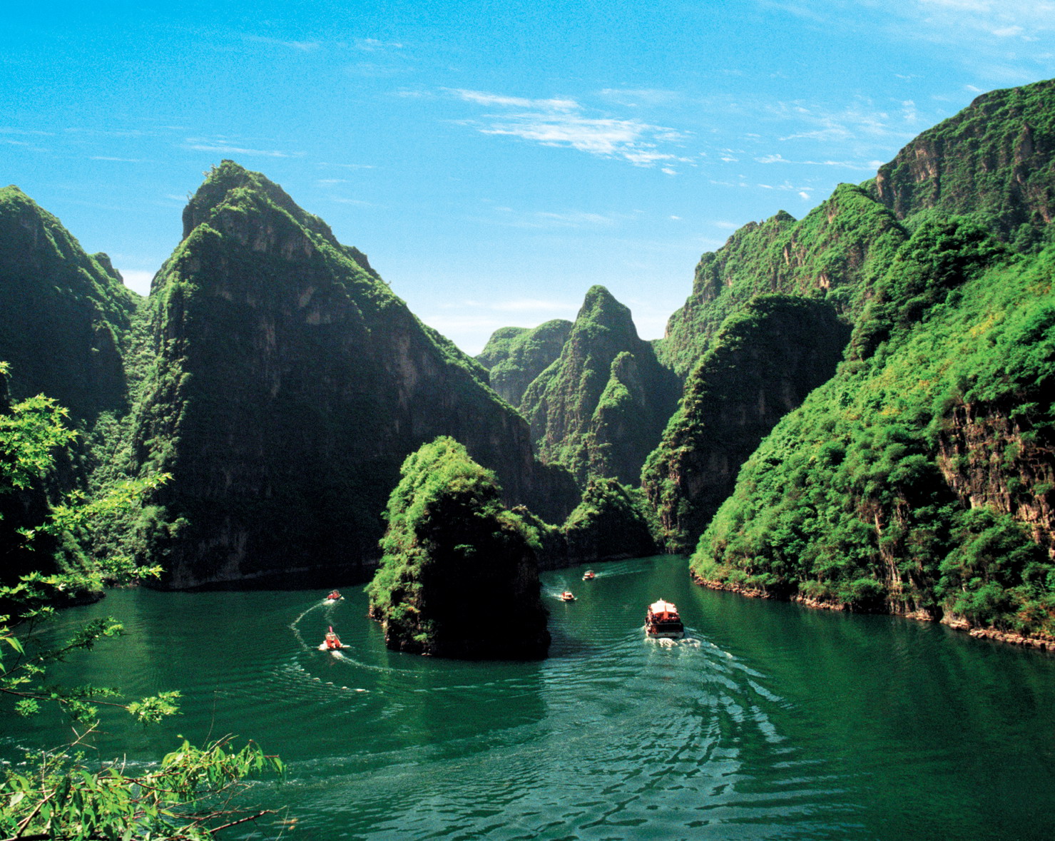 這座小山峰它三面環(huán)水,一面依山,以半島的形式展現(xiàn)在我們眼前,正因?yàn)樗晨咳悍澹瑯?gòu)圖極為灑脫,所以被稱為“龍慶峽的標(biāo)志”。 版權(quán)所有聊城聊之旅旅行社有限公司,轉(zhuǎn)載必究!鳳冠島水面的寬度是50米,水深大約35米,您登船的碼頭大壩的位置是最深處,水深達(dá)到60米。