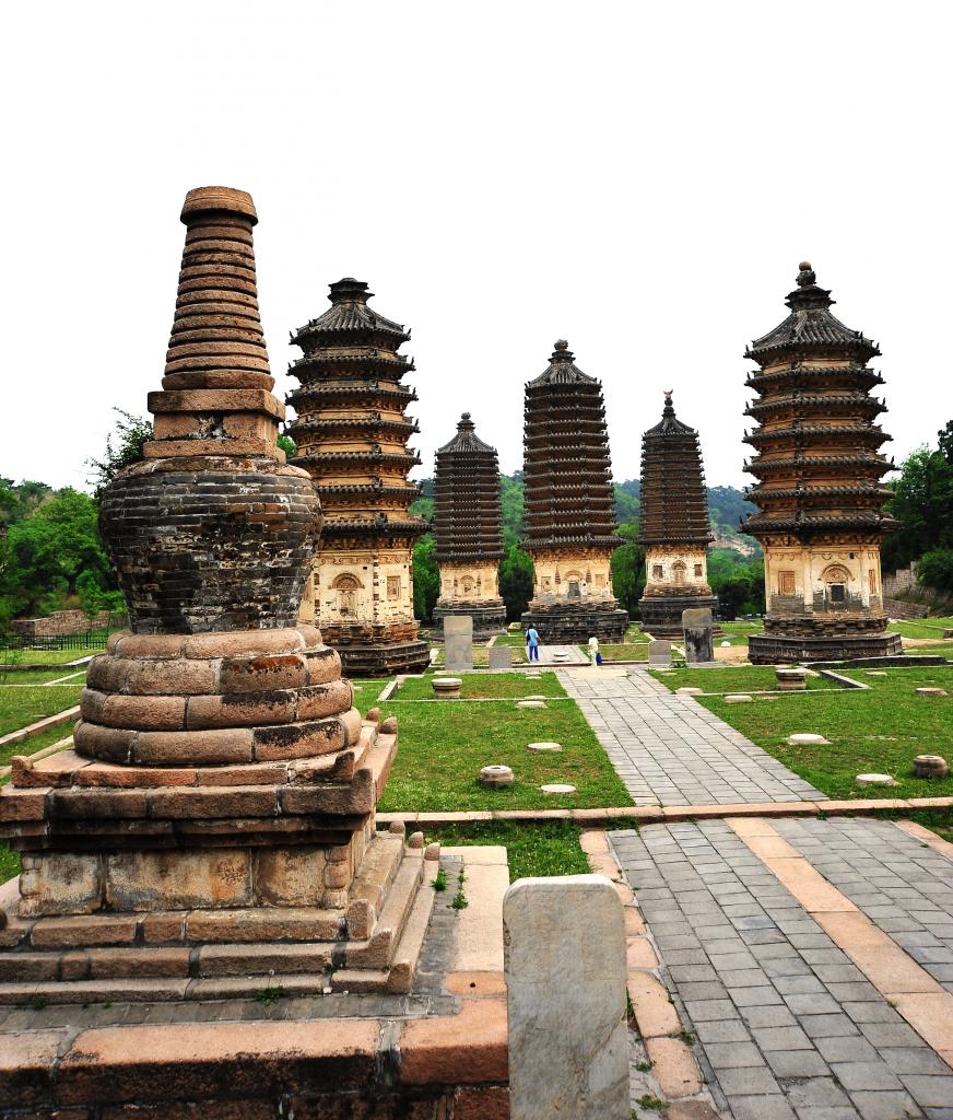 經修繕,現景區內可供參觀的古塔有18座。塔的形制、風格各異。其中,密檐式磚塔共計有7座。其整體形象分別由“須彌座”式的塔基,雕刻有門窗、佛像的塔身,層層密檐和塔剎等部分組成。外輪廓線條挺拔秀麗,磚雕精美細膩,是研究古代建筑美學及佛教文化的絕好資料。