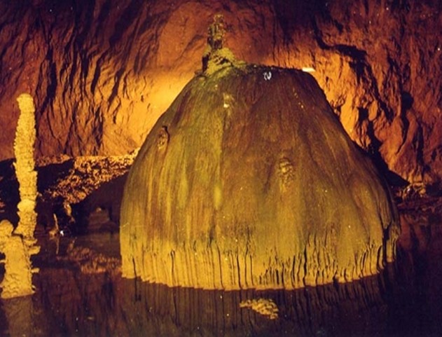此洞洞中有天。南、北洞間,是個桶形的通天洞,洞周圍峭壁垂直,高達百米,洞底方圓20畝的橙果園,堪稱“世外桃源”。洞邊有曲折小路可攀援而上。登臨“天窗”,俯瞰空谷,忽覺那一株株高出人頭的果樹,恰如一列列伏波的幼苗,依偎在大山古洞的曠袤深邃中。版權所有山東聊城聊之旅國際旅行社有限公司,轉載必究!南洞的二、三樓洞的皇帝宮殿、迷魂宮更加瑰麗多姿,有的如帆出海,百舸爭發;有的像群仙席地,各具形情;有的如臥室裝飾,枕被俱全,壁上掛鏡閃閃發光,不啻鬼斧神工,天造地設。 洞內景物,隨季節變幻。盛夏時節,洞頂無數巖泉下滲,含滴有節。洞底股股清泉注滿深淺之潭,淺處宜淌足,深處可泛舟。版權所有山東聊城聊之旅國際旅行社有限公司,轉載必究!從洞中溢出的泉水與西邊從仁鄉潛過的盤陽河伏流在洞中交匯,涇渭分明,清濁可辨,奔騰咆哮直下坡月河段。秋冬之時,瀠流碧潭,回清倒影。春季,洞外洞內天窗上下,繁花似錦,鳥鳴泉唱,與洞內奇觀相交輝映。加之洞內氣溫盛夏若秋,隆冬勝春,景色宜人,令到此考察和旅游的中外客人嘆為觀止。